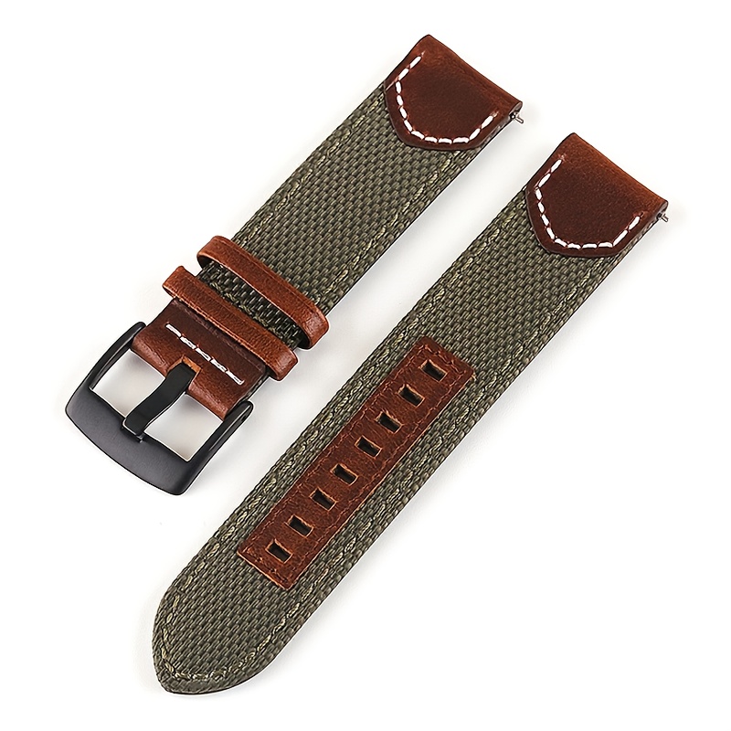 GFHEYE Vintage Oil Genuine Leather & Nylon Watch Band Strap with Steel Buckle