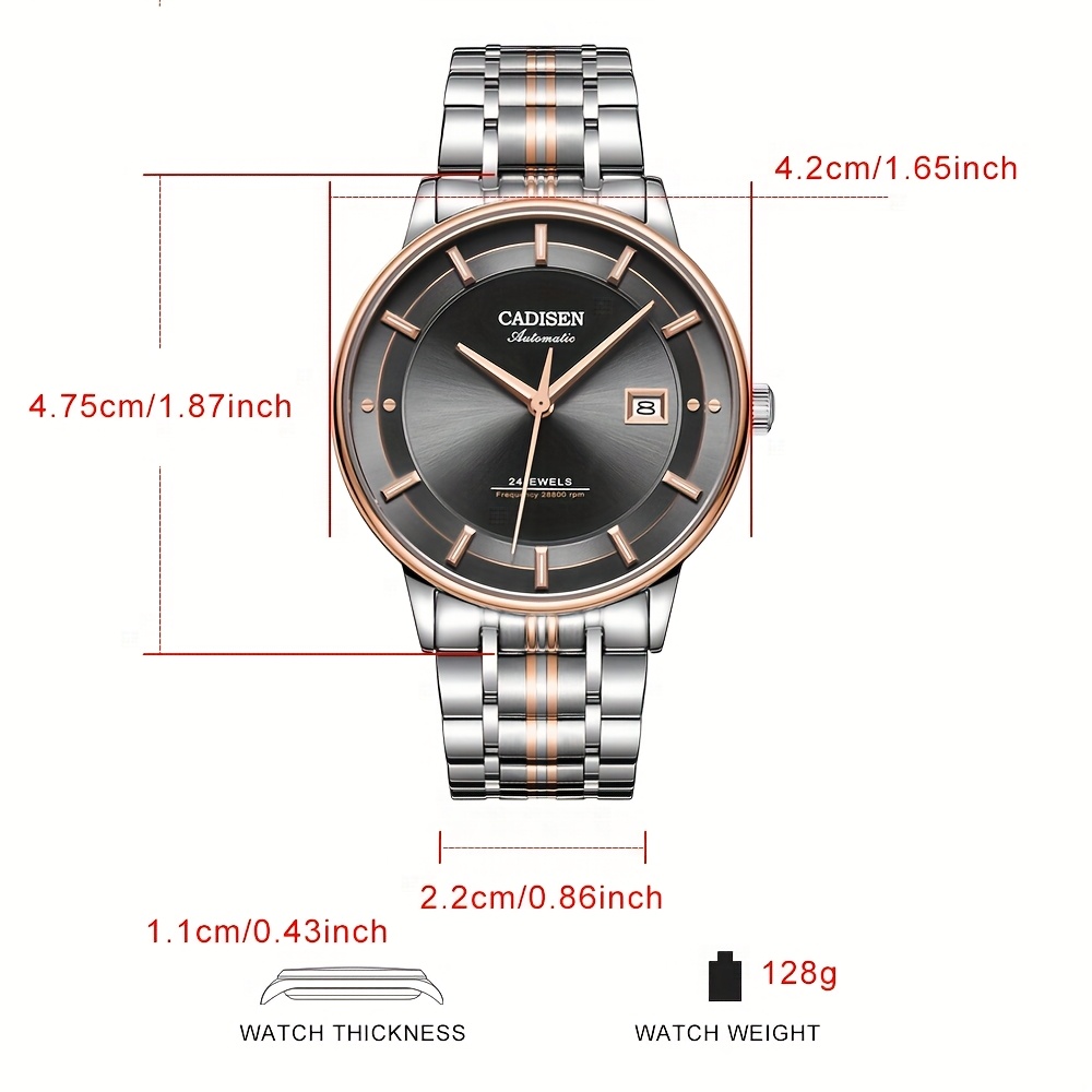 CADISEN Ultra-thin Mechanical Wriswatch 9015 - Luxury Single-dome Crystal Automatic Watch for Men