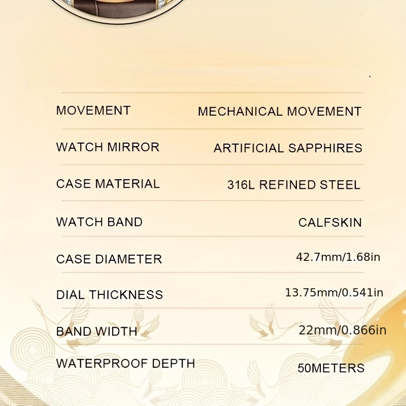 Men's Automatic Mechanical Watch Business Men's Watch Chinese Style Fashion Waterproof Men's Watch
