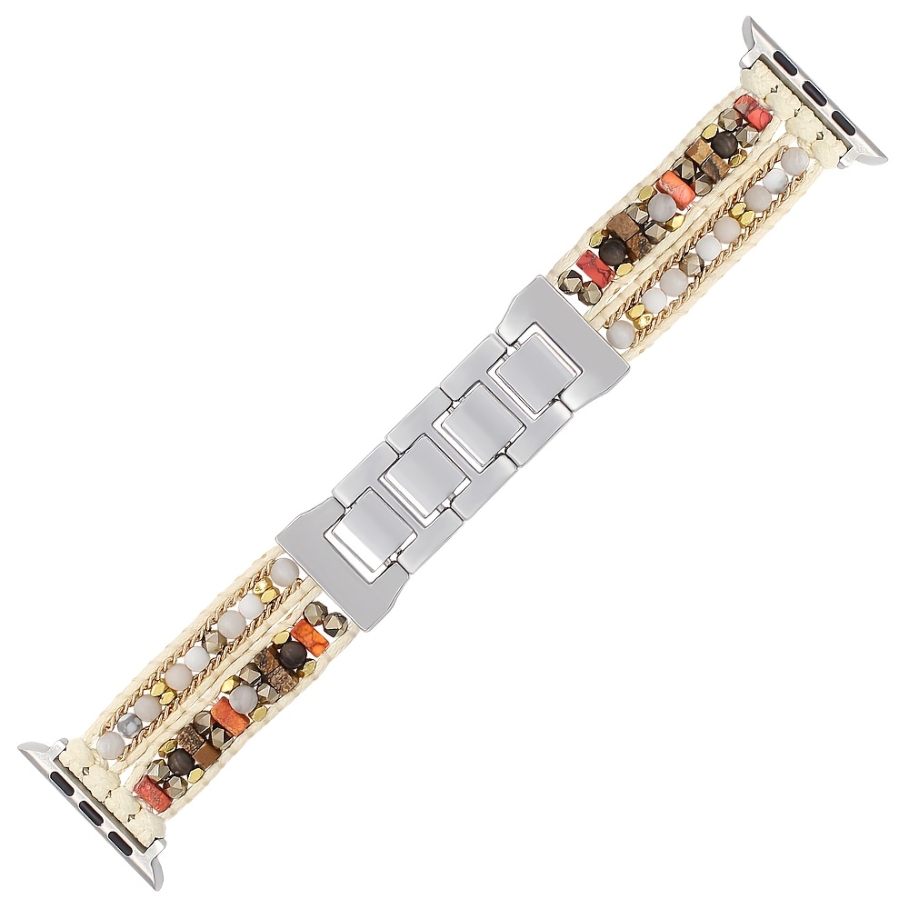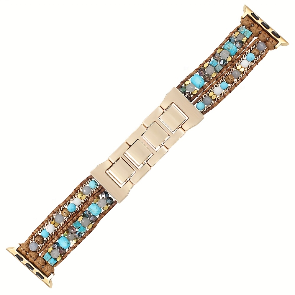 1pc Bohemian Style Natural Stone Beaded Apple Watch Strap, Unisex Bracelet with Dual Chain Options Available
