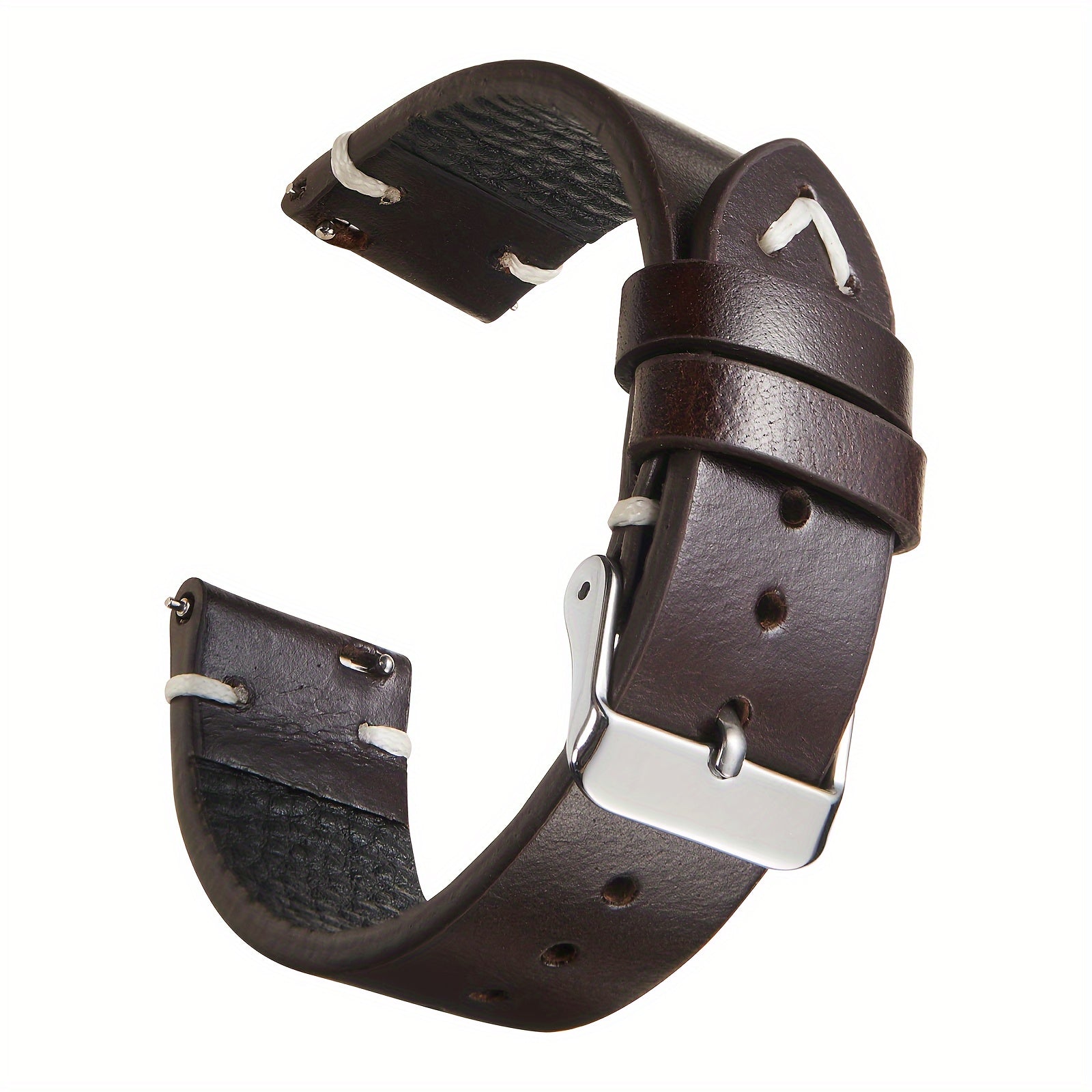 1pc Vintage Style Genuine Leather Watch Strap, Casual Tang Buckle Design