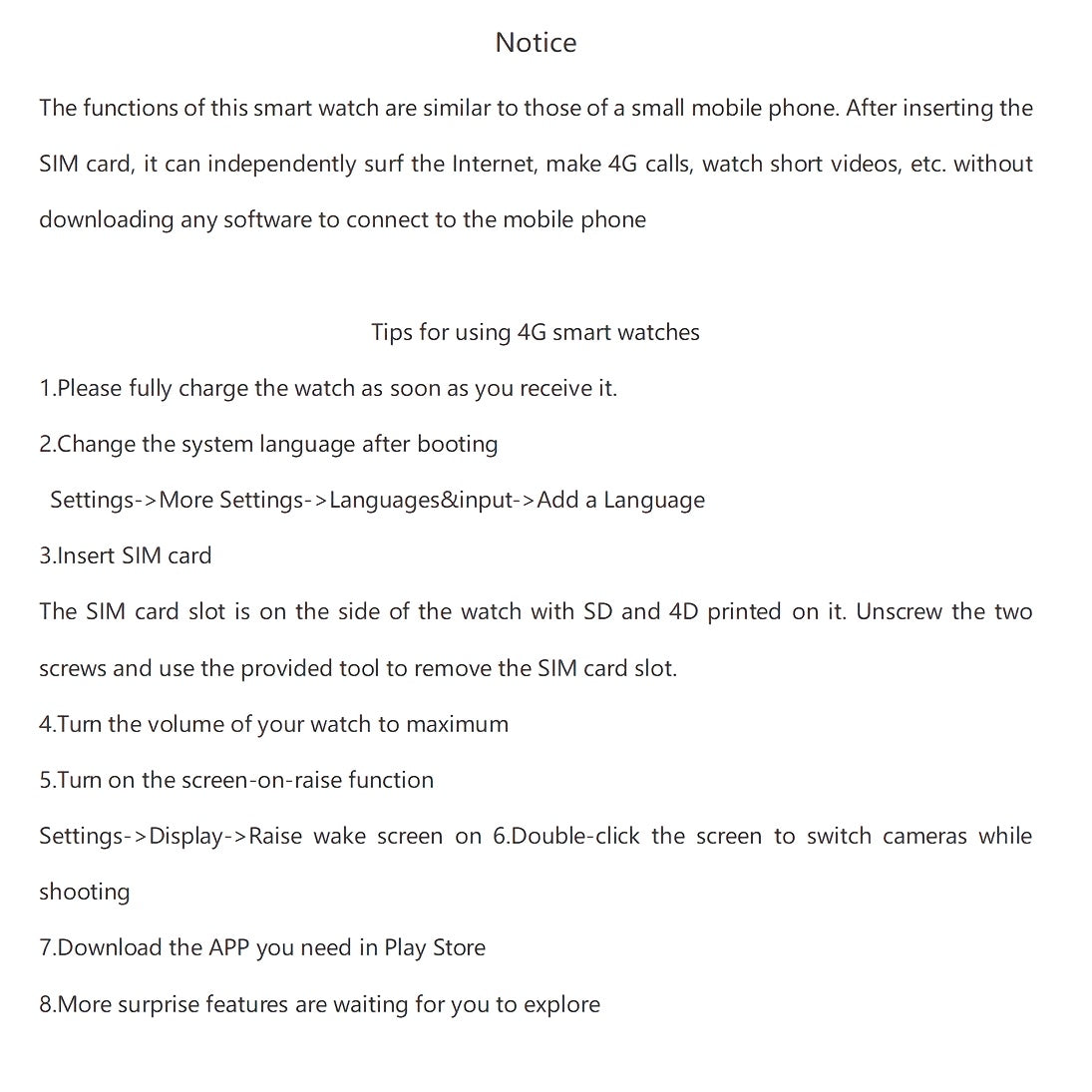 4G smart watch SIM card 4G watch with camera 4G Android Smart Watch with GPS