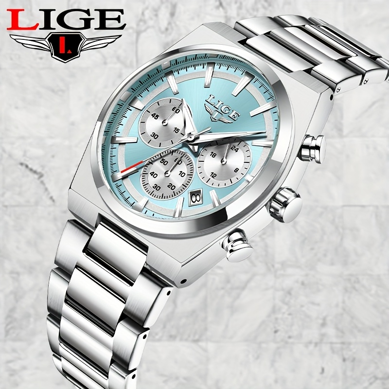 LIGE Classic Unisex Watch - Elegant Fashion Quartz Chronograph with Steel Band